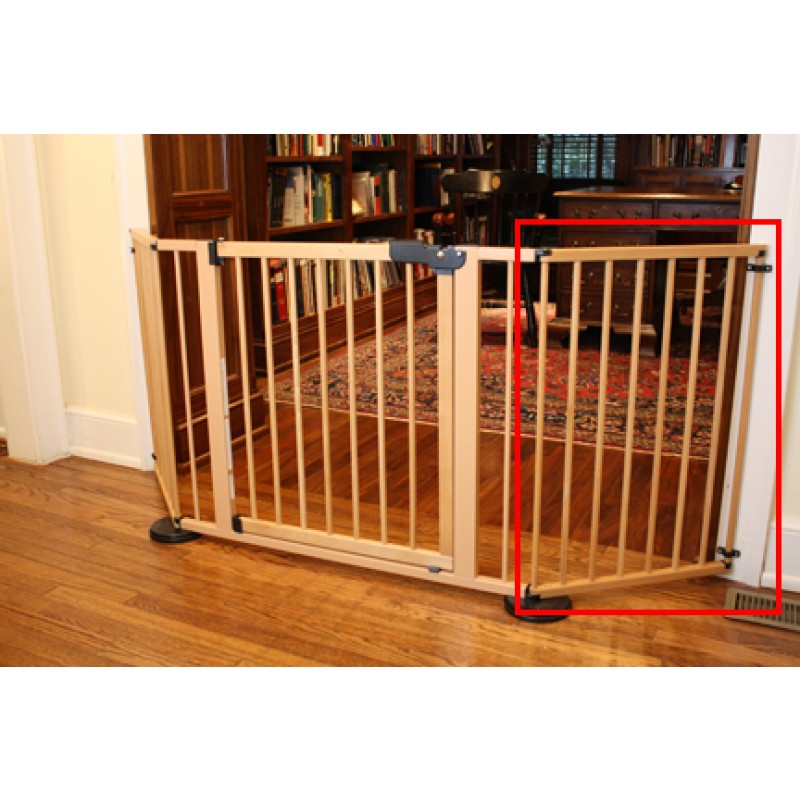 The VersaGate features a 40 inch door section with a large 24 inch opening and rubber-coated, stabilizing feet to increase stability and prevent scratching floors. The basic Versagate system (VG65) comes with a door panel (40 inches) and two medium extensions (20 inches).