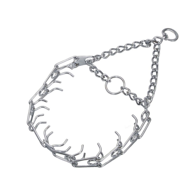This training collar features a solid fastener plate that provides a more secure connection making fastening the collar around your dog's neck easier and safer. To adjust size, add or remove individual links. The patented center plate construction and symmetrical prong placement provide natural contact for optimal communication.