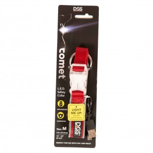 The Comet is the newest (and brightest) DGS smart innovation...and unlike anything else on the market. Research shows that the majority of accidents involving pets are caused by poor visibility due to darkness or inclement weather. Many of these accidents can be avoided by improving a dog's visibility. It features a bright LED light integrated into the strong buckle of a tough nylon collar with a heavy-duty O-ring, so it's as functional as it is practical. It redefines convenience by being stylish and comfortable, so it can be worn all day, every day and then switched on to be the best kind of safety device: one you can use at a moment's notice. Take your dog to the park and keep track of them for hundreds of feet away. Walk city streets with confidence knowing that motorists see you. Forewarn pedestrians that your pooch is silently bounding about.
