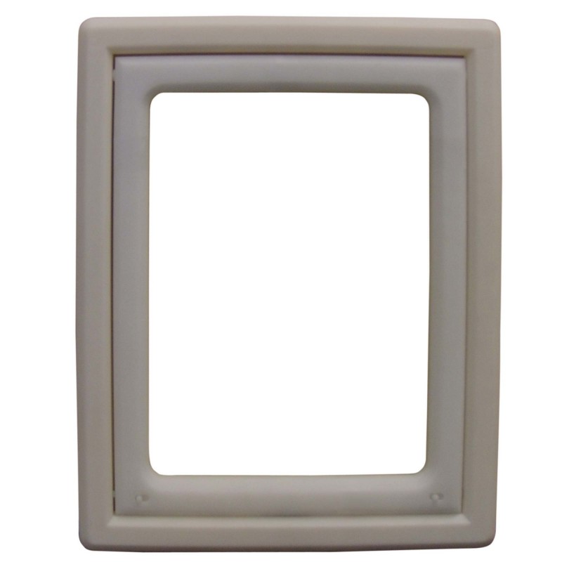 Plastic frame flap with clear plastic insert and magnetized corners