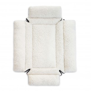 The four corners are darted to allow the pad to fit different sized crates. The bolster slides up the edges and fills in the corners for a perfect comfortable fit. The ultra-plush fleece is soft and cozy for ultimate comfort. The bottom has a “stay-put” non-slip fabric