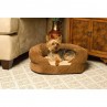This bed sits on top of 3" of medical grade orthopedic foam, while the bolster is filled with premium polyfil made from recycled plastic bottles. The bed is made from soft, upholstery grade velvet and the sleeping surface is covered with super-soft microfleece. This bed is luxury from top to bottom. the cover is removable for easy machine wash and care. Available in 3 sizes and 2 colors.