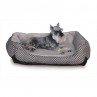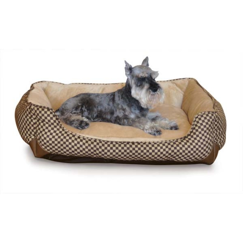This self-warming bed in available in 2 color combinations. The outside of the bed is in poly/cotton and the inside is lined in soft microfleece. The pillow has a layer of metalized insulation that radiates warmth generated from the pets own body heat. Completely machine washable and filled with premium polyfil made from recycled plastic bottles. The bottom of the bed has a layer of "stay put" non-slip fabric for stability.