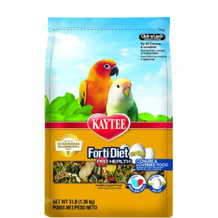Kaytee Forti-Diet Pro Health Egg-Cite! Conure and Lovebird food was developed by an avian nutritionist to provide the nutrition bird owners have come to expect. Egg crumbles provide a source of high quality protein, vitamins, minerals and essential amino