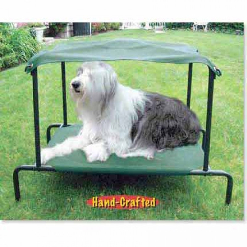 Breezy Bed offers your pet an elevated indoor / outdoor bed with overhead sun and rain protection with built in KABANA. Weather resistant canvas is quick drying and washable with a garden hose. Perfect for all small to medium size pets. Great for kennels and to get your pet up off the ground.
