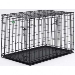 Two doors for easy access to your pet inside either thru the traditional front door or from the side with the second door. The dog crate comes to you equipped with every feature you can think of: a composite plastic pan for easy cleanup in the event of an accident; plastic carrying handle to move the dog crate from one location to another comfortably; safe and secure slide bolt latches for the safety and security of the pet inside and the furniture on the outside; and most importantly a FREE divider panel for use while your puppy is still growing up.