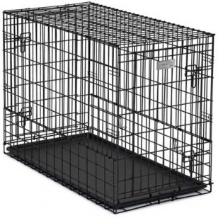 It’s made of durable materials and is easy to clean. Fold and Carry Design as its main feature make it a portable crate. Now upgraded with two doors, one located on each end of the crate .