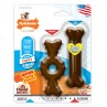 This puppy pack has two long-lasting chew toys designed to encourage healthy chewing habits. The first toy is made of soft, flexible material made just for puppies who need teething relief or a gentle chewing session. The second is a durable nylon bone for when your puppy gets all his adult teeth. Both puppy chew toys help promote clean teeth and discourage unhealthy chewing habits. Give your puppy even MORE taste with a medley of delicious flavors throughout! Color may vary.