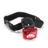It comes with an easy on easy off adjustable elastic band so it's easy to use. The collar is not attached to the leash so the light stays focused forward.