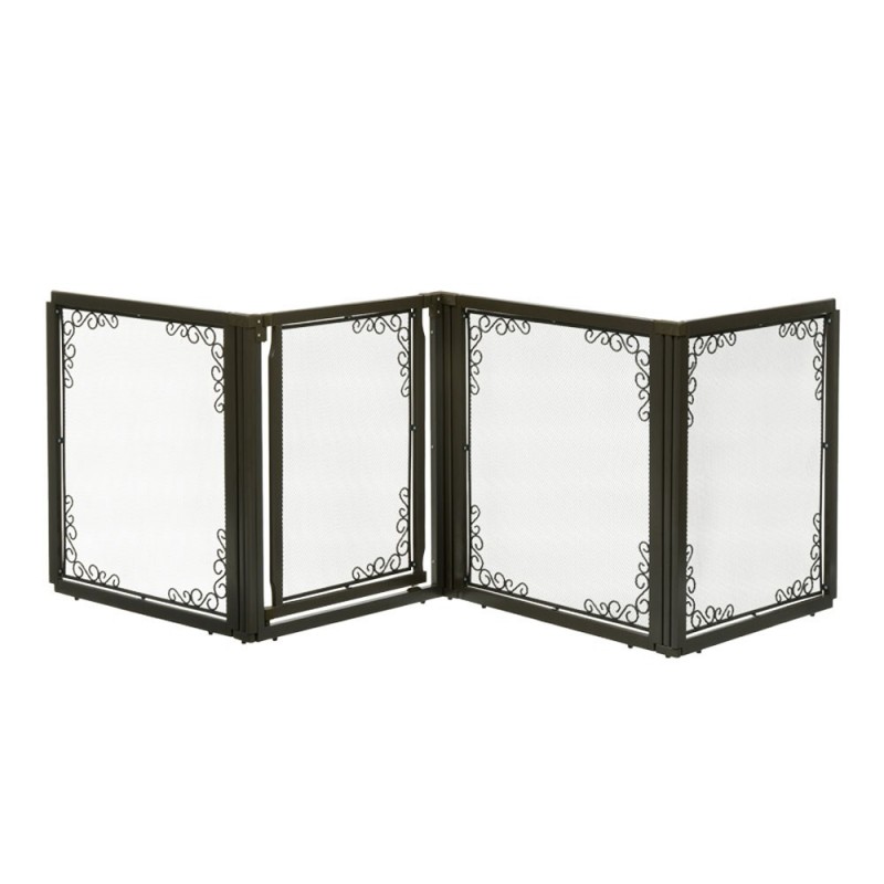 You don’t have to sacrifice style for function. Get the luxury of three pet products in one as this gate converts quickly and easily from a free standing pet gate – to a room divider – to a pet pen! The gate includes a lockable door that allows you to move freely from room to room without having to shuffle the entire unit. Each panel locks in place at 90⁰ and 180⁰ angles using a specially designed cap, which also provides extra stability. Specially designed cap locks panels in place at 90⁰ and 180⁰ angles for extra stability. Beautiful wood construction with mesh panels. Easy to assemble. DO NOT move panels while caps are on to avoid product damage. Instruction manual included.