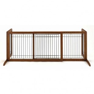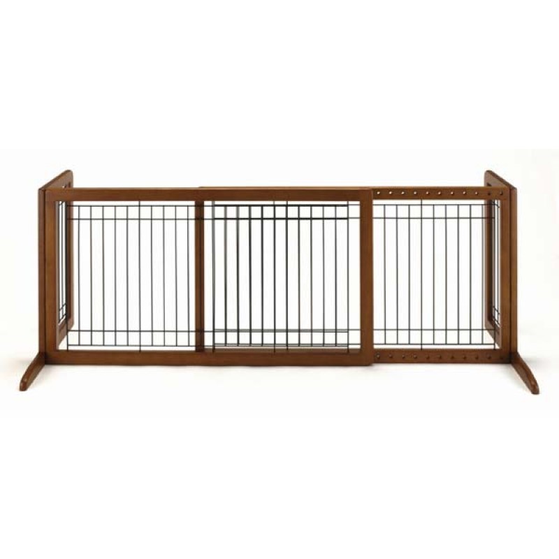 Imagine this beautiful pet gate in your home. It's designed to keep your pet safely confined in most areas while allowing you to move freely about. Its low height allows you to simply step over with ease! Side panels are designed to keep the gate from tipping over, plus the rubber feet keep it from sliding on hard floor surfaces. Its beautiful hardwood construction complements Richell's other fine wood pet products! Also available in Large, HS, and HL sizes!